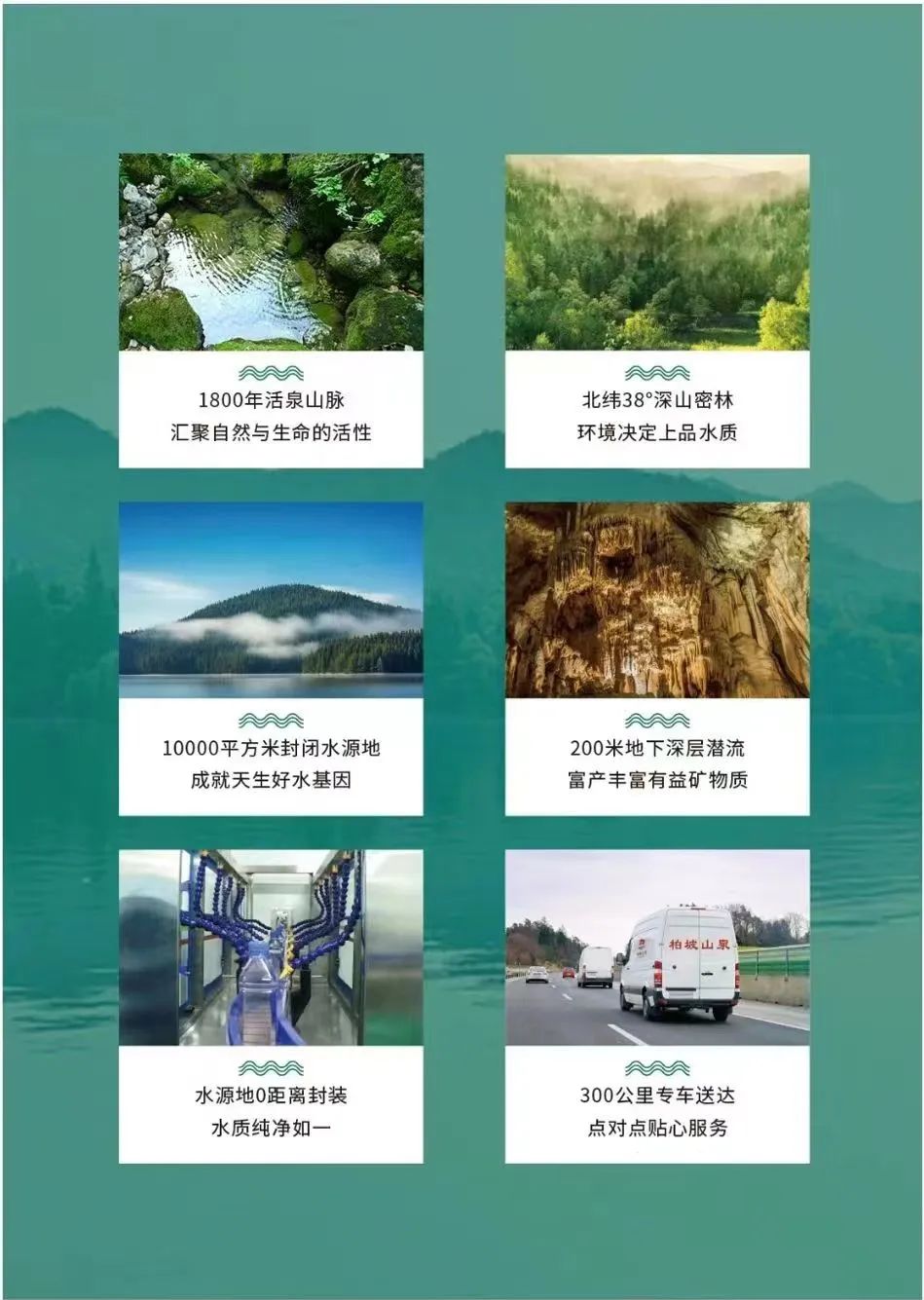 遠遁群山去塵囂。柏坡山泉涌自200米地下巖層,泉眼位于封閉保護區(qū)內(nèi),周邊松柏蒼翠,大自然精華匯聚,醞釀出獨特的甘甜清爽口感,據(jù)權威部門檢驗報告顯示:柏坡山泉富鍶、低鈉、高偏硅酸,天然小分子、活性強,易吸收。偏硅酸含量、鍶含量均優(yōu)于國家標準,PH值呈弱堿性,是飲用養(yǎng)生、烹飪佳肴、泡茶品鑒的上乘之選。