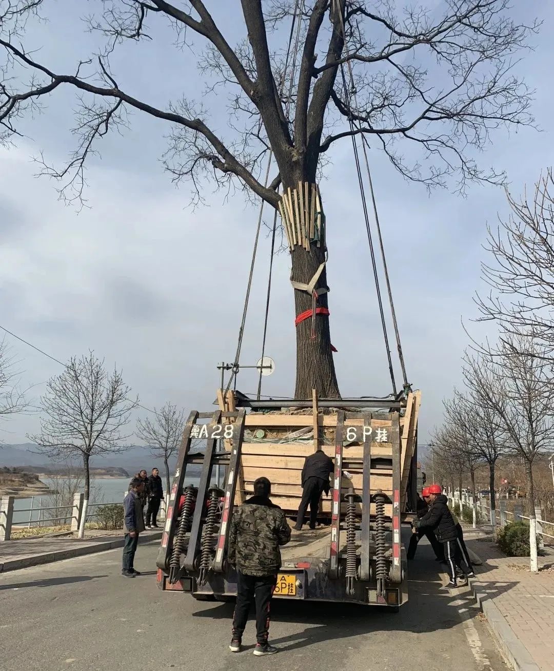 這種人性化的新型裝置,將起吊著力點由樹干部位轉(zhuǎn)移到根部,避免對大槐樹造成損傷;且結(jié)合下凹結(jié)構(gòu)放置根系護框,對大槐樹根系起到較好的保護作用,有效提高了移植成活率。此外,借助平臺船進行運送,以水的浮力承受大槐樹自身重量,大大減少了復(fù)雜機械設(shè)備參與所帶來的人為干擾、破壞,更能實現(xiàn)大槐樹在運輸過程中的零損傷。