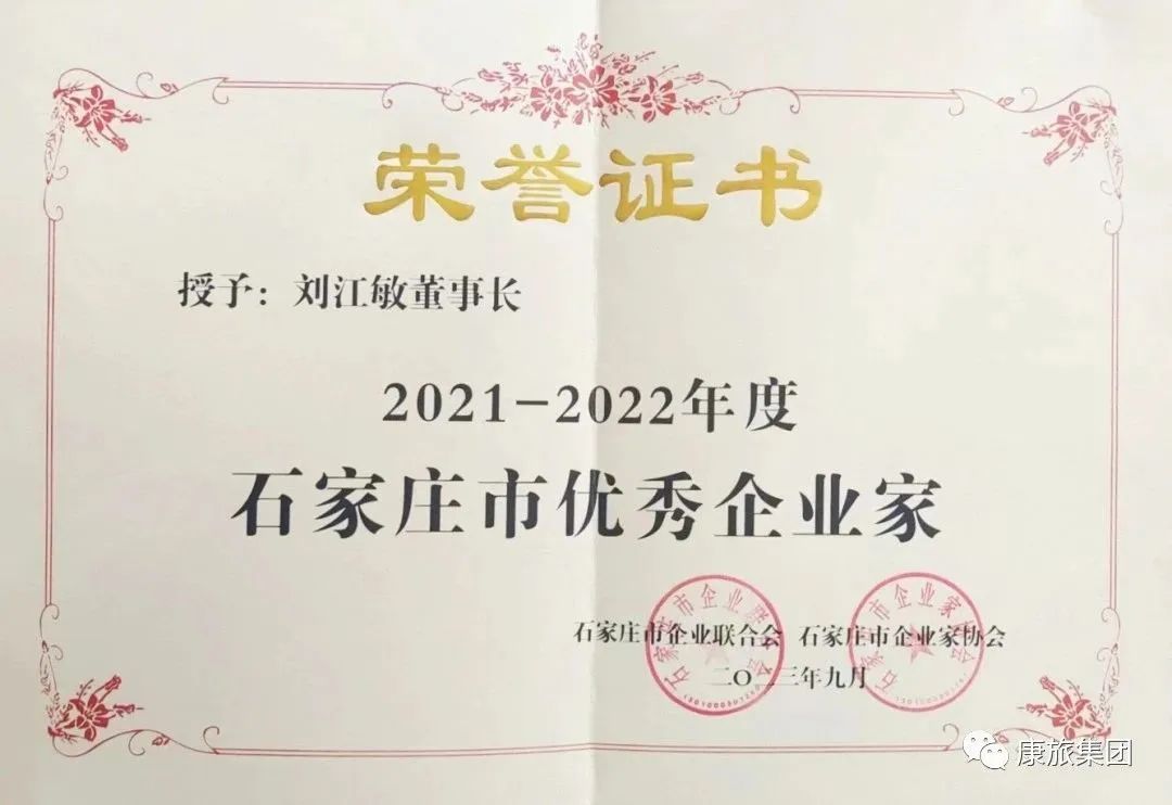 近期,經(jīng)石家莊市企業(yè)聯(lián)合會、石家莊市企業(yè)家協(xié)會駐會會長辦公室研究評定,授予康旅控股集團(tuán)董事長劉江敏“石家莊市優(yōu)秀企業(yè)家”稱號!二度蟬聯(lián),實(shí)至名歸!
